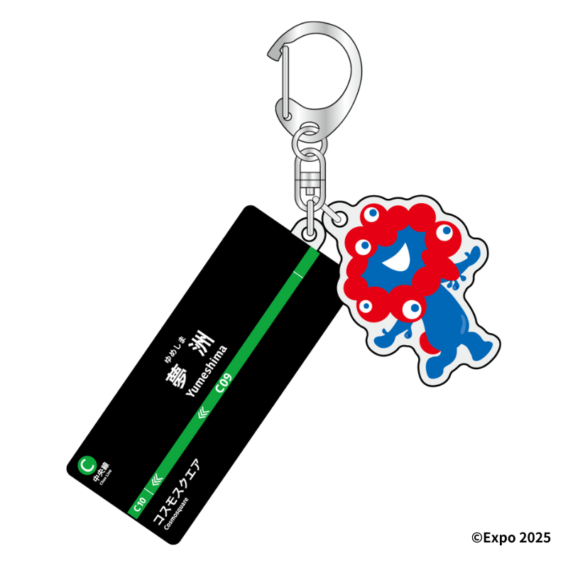 2025年大阪・関西万博会場の最寄り駅として利用されたOsaka Metro中央線「夢洲駅」の駅名標とミャクミャクの2連アクリルキーホルダーを発売!